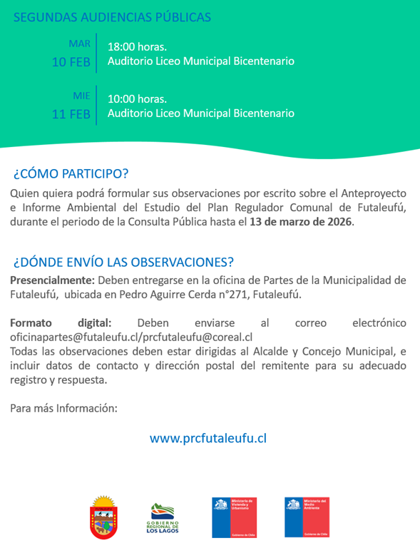 • Futaleufú invita a la comunidad a participar en las Segundas Audiencias Públicas sobre el Plan Regulador Comunal